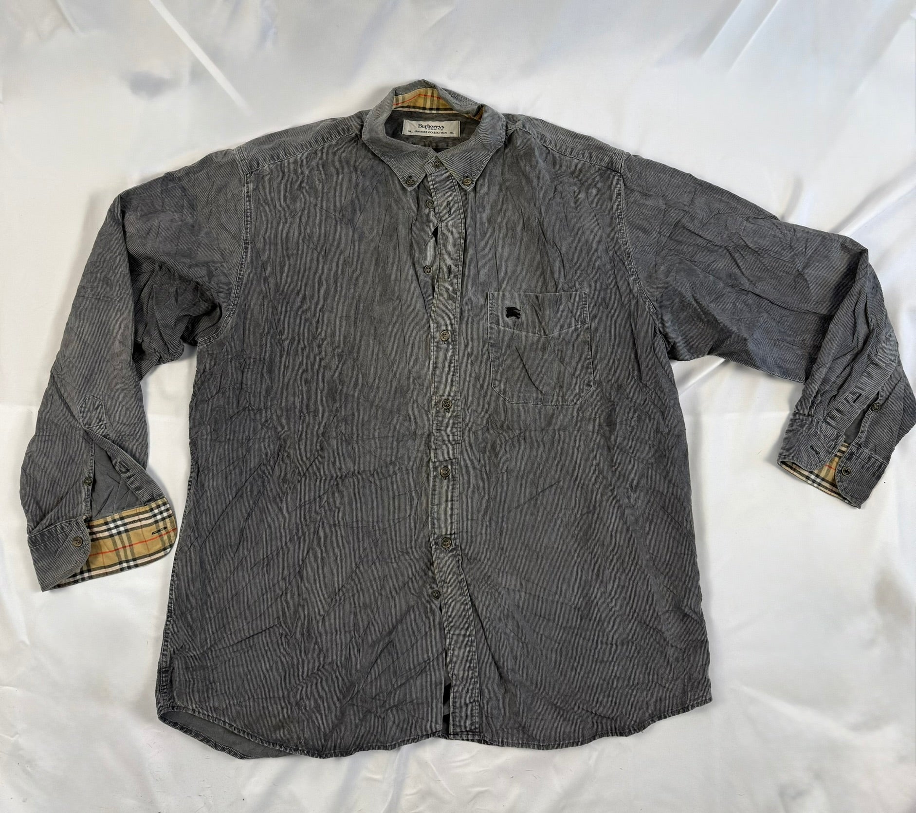 Courdey shirt van het merk Burberry's in een grijze kleur. De courdey is een herenmaat XL en is gemaakt van 100% katoen.