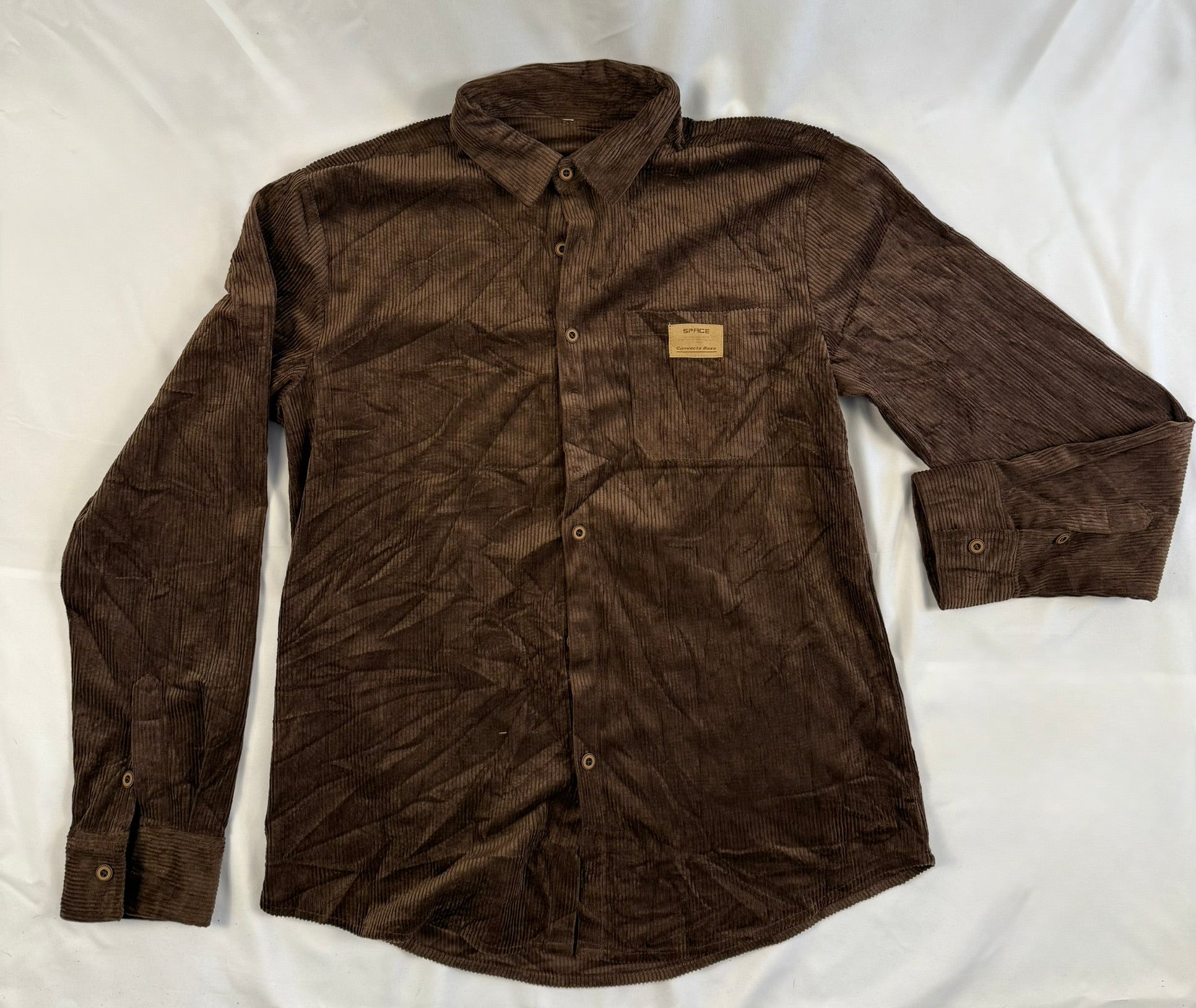 Courdey van het merk Space in een bruine kleur. De courdey is een herenmaat M en gemaakt van 80% katoen en 20% polyester.